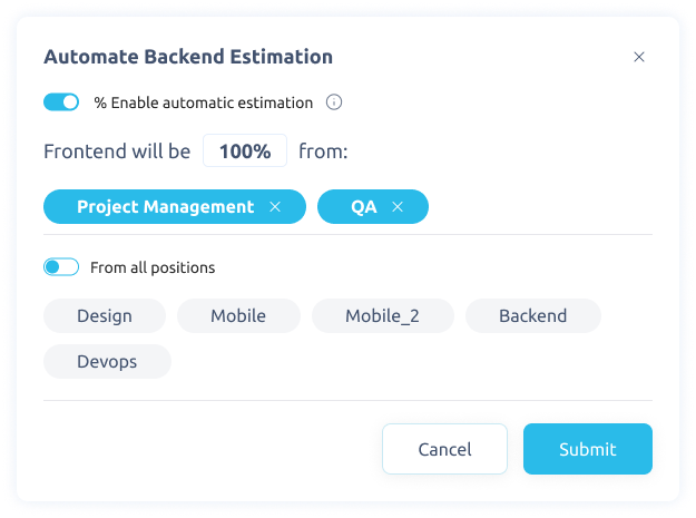 Yes, Doofer allows users to automate estimations. For example, teams can set rules like “QA = 20% of development time”, and Doofer will automatically calculate the estimated hours and costs.